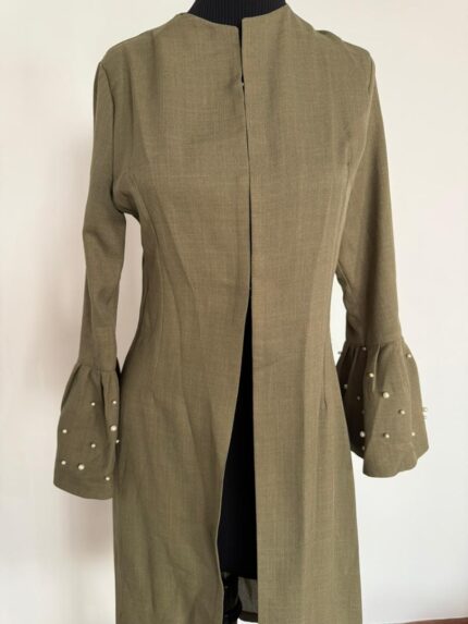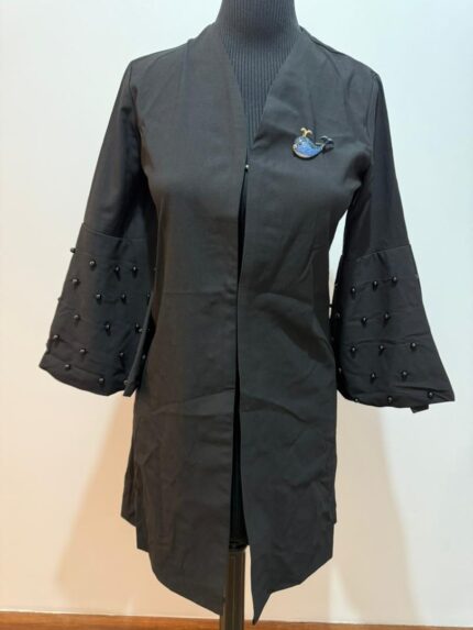 مانتو ترک آستین مرواریددار به همراه گل سینه وال