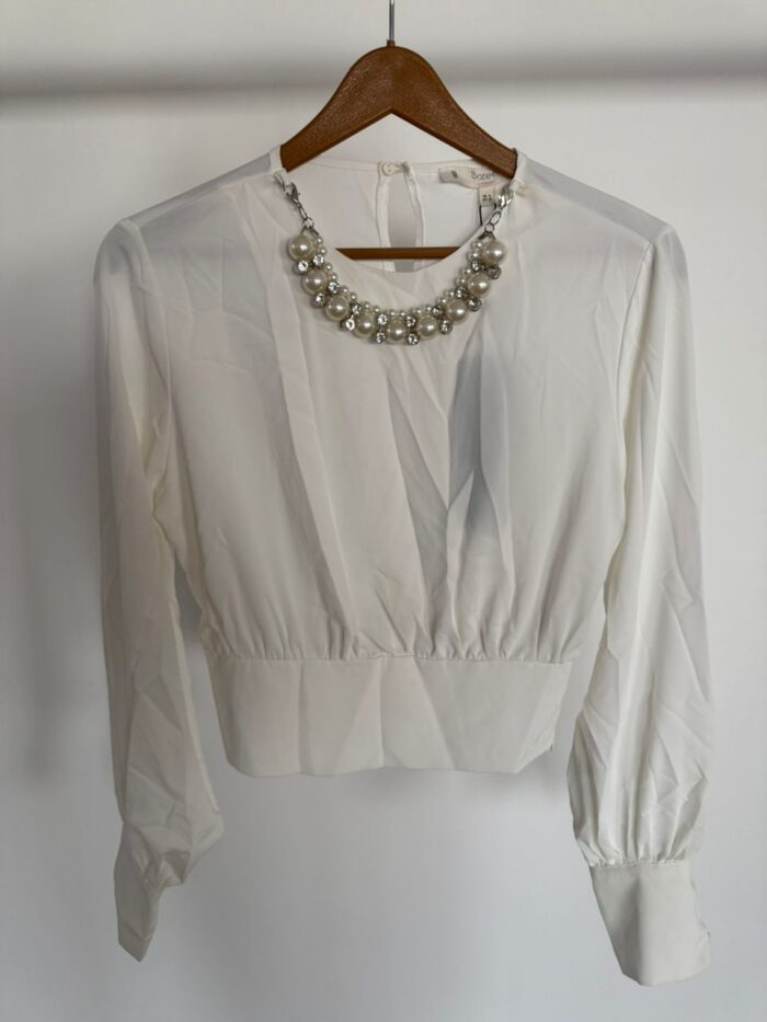 شومیز ترک سفید یقه مرواریدی